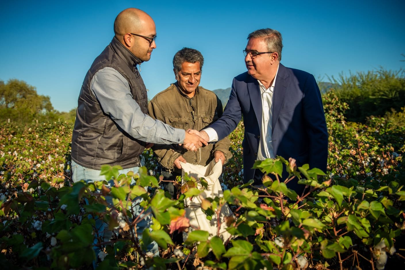 Las autoridades recorrieron campos productivos en Capayán donde se realizan ensayos de cultivos de algodón, que tuvieron sus primeras cosechas.