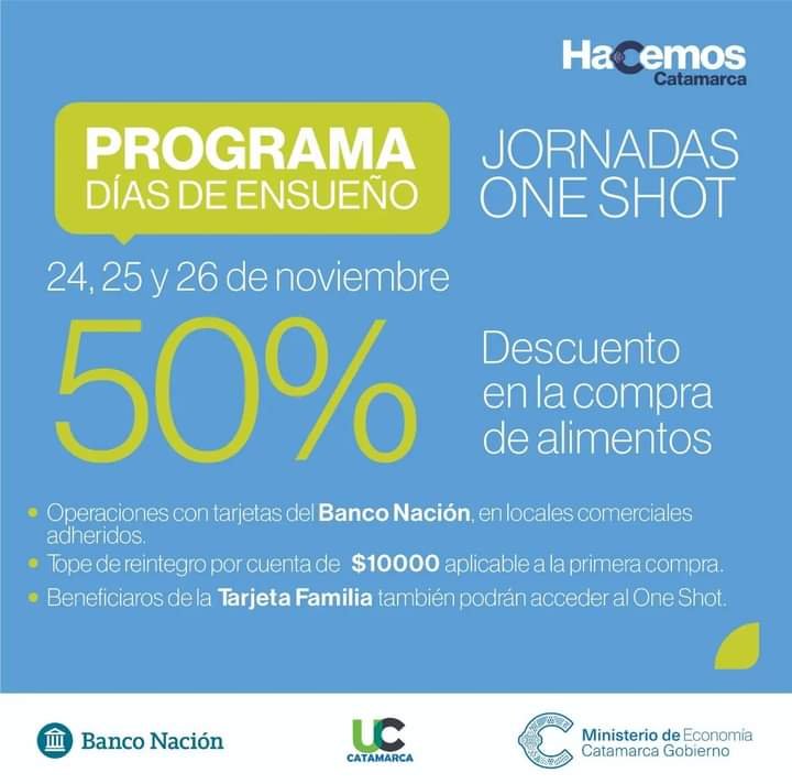 El beneficio del programa, que prevé un tope de reintegro de $10.000 por cuenta, regirá desde el jueves 24 hasta el sábado 26 de noviembre, solo en la compra de alimentos en comercios de capitales catamarqueños.