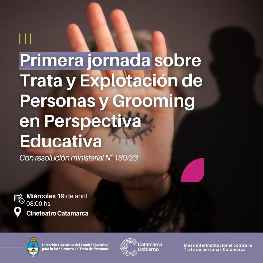La primera jornada Provincial sobre Trata de Personas y Grooming en Perspectiva Educativa iniciará este miércoles, a partir de las 08:00 horas, y contará con la presencia del Comité Ejecutivo para la Lucha contra la Trata y Explotación de Personas y para la Protección y Asistencia a las Víctimas, bajo la dirección operativa de Gustavo Vera, y el Ministerio de Trabajo de la Nación.