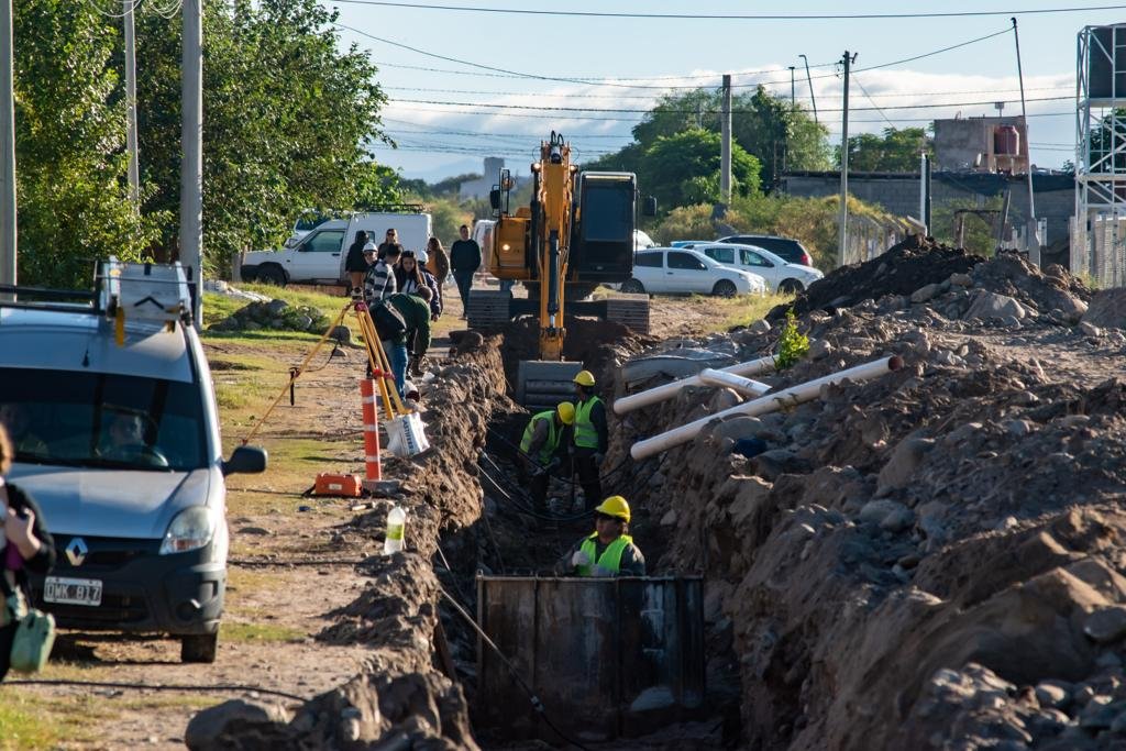 La obra, que lleva un avance del 10% y se estima estará finalizada a finales de agosto, comprende la realización de una red de desagües cloacales que incluyen extensión de red y conexiones domiciliarias.