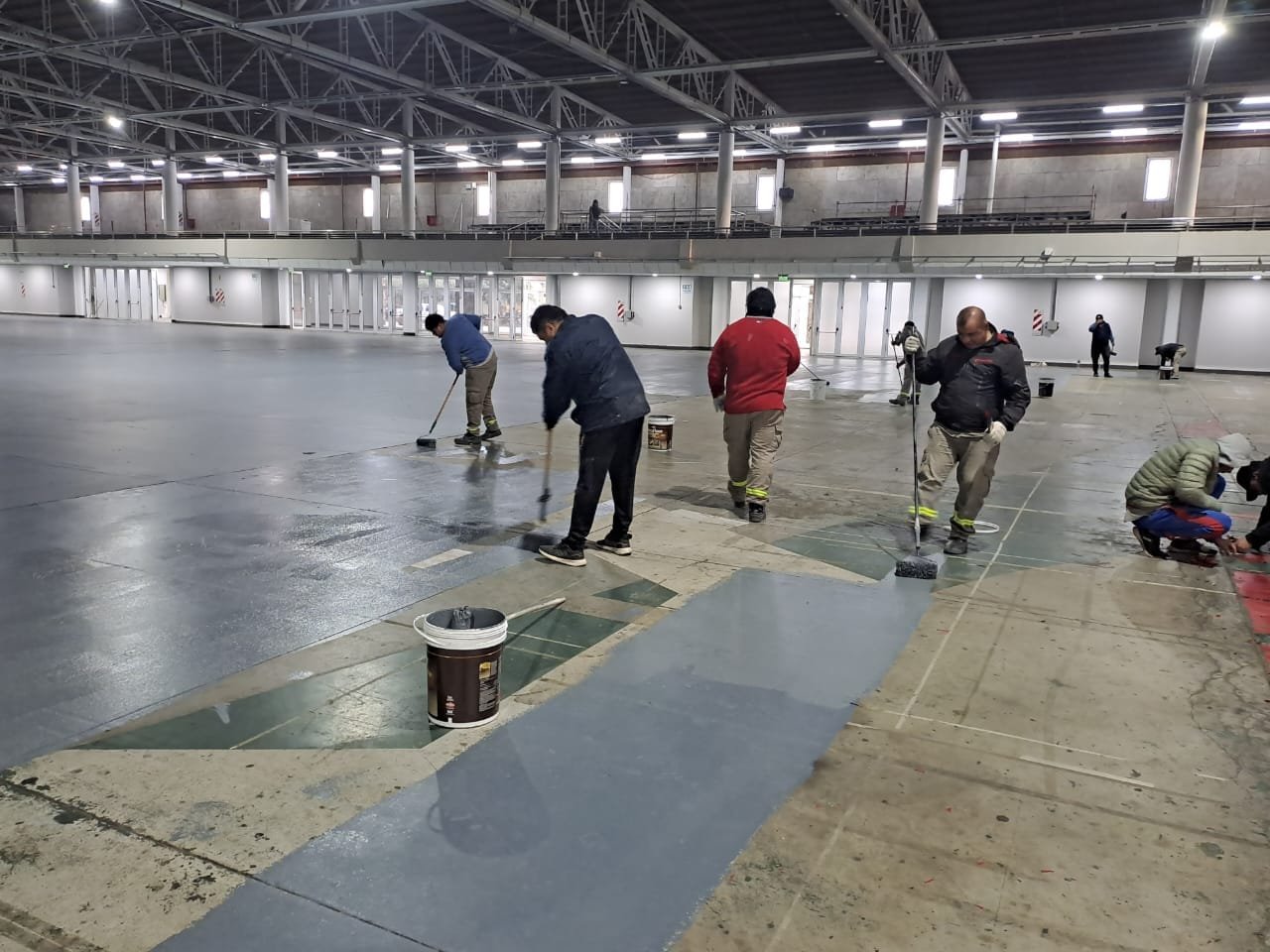 Entre los trabajos que se concretan se encuentra la pintura interior y exterior de los pabellones, galerías y columnas de la pérgola central. También se pintará el piso y las plateas del salón mayor y el del sector en donde se instalarán las carpas.